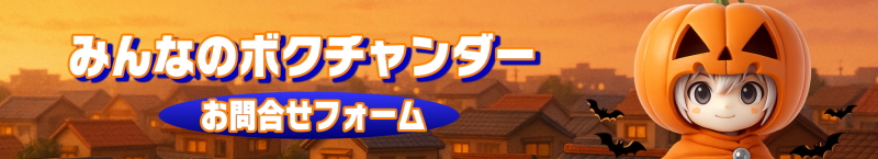 ボクチャンダー関連お問合せ 2025.09.29 ボクチャンダー関連お問合せには以下こちらのお問合せジフォームをご利用ください。 <プライバシーポリシー> ボクチャンダーへお問合せ頂いた際に取得した個人情報は、第三者に譲渡されることはございません。 また、お問合せにお返事させて頂く事以外に、その個人情報を乱用することはございません。 氏名 メールアドレス メールアドレス確認用 題名 メッセージ本文 (任意) スパム対策:クイズの答えの欄に "orange"とご記入下さい。 ボクチャンダーのイメージカラーは ? Δ